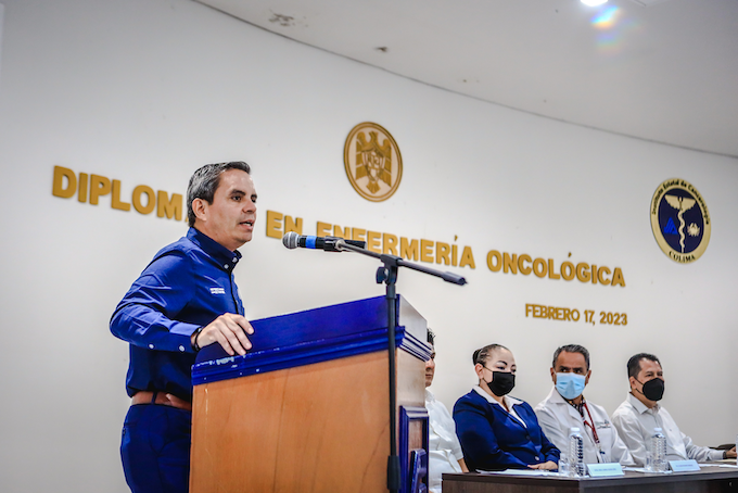 Colima, México, Comunicado (19/02/2023).- Este viernes, en el auditorio del Instituto Estatal de Cancerología (IEC), iniciaron las actividades del primer Diplomado en Enfermería Oncológica, que estará...