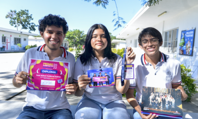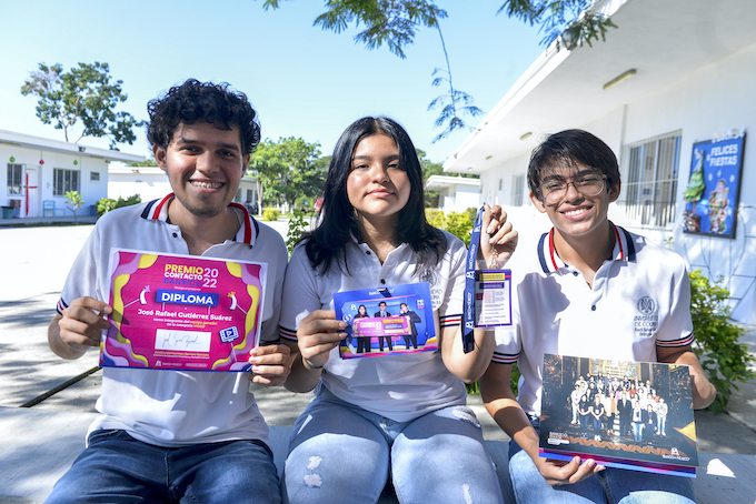 Colima, México, Comunicado (07/12/2022).- Iihuitl Arely Navarro Fuentes, Karol Josafat Cisneros Suárez y José Rafael Gutiérrez Suárez, alumna y alumnos del Bachillerato 33 de la Universidad...
