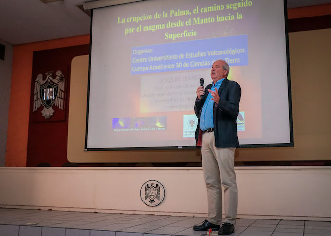 Colima, México, Comunicado (22/03/2022).- Jesús Ibáñez Godoy, catedrático del Departamento de Física Teórica y del Cosmos de la Universidad de Granada impartió la charla: “La erupción...
