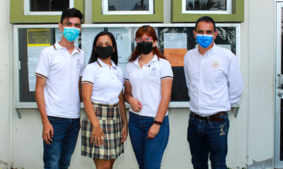 Colima, México, Avanzada (22/11/2021).- Los estudiantes del Bachillerato 20 de la Universidad de Colima,Vivian Castrejón Medina, Evelyn Rizo Contreras y Cuitláhuac Díaz Acevedo, así como Carlos Arellano...