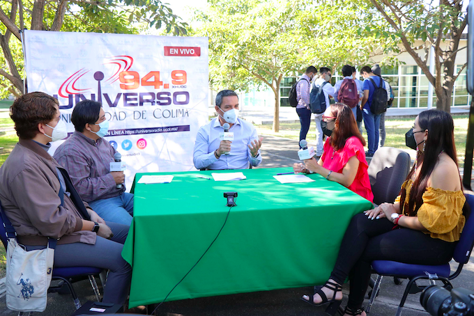 Colima, México, Avanzada (23/11/2021).- Durante su participación en el programa de radio “Rectoría en frecuencia”, realizado este lunes en el campus norte, a un costado de...
