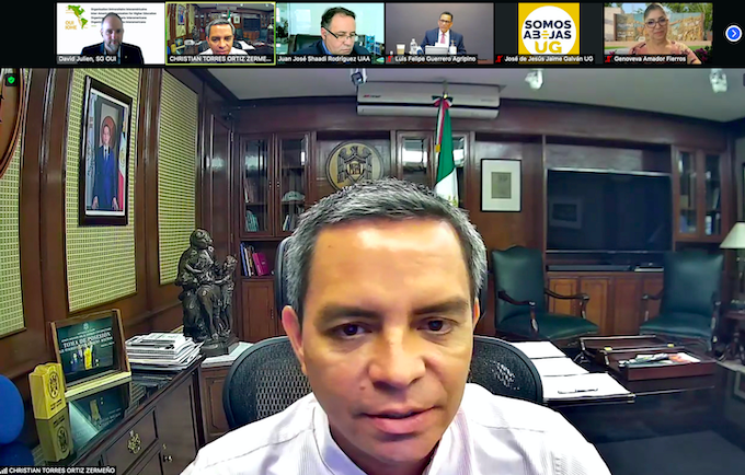 Colima, México, Comunicado (31/08/2021).- En reunión de trabajo del Consejo de la Organización Universitaria Interamericana (OUI), Región México, celebrada de manera virtual este lunes, Christian Jorge...
