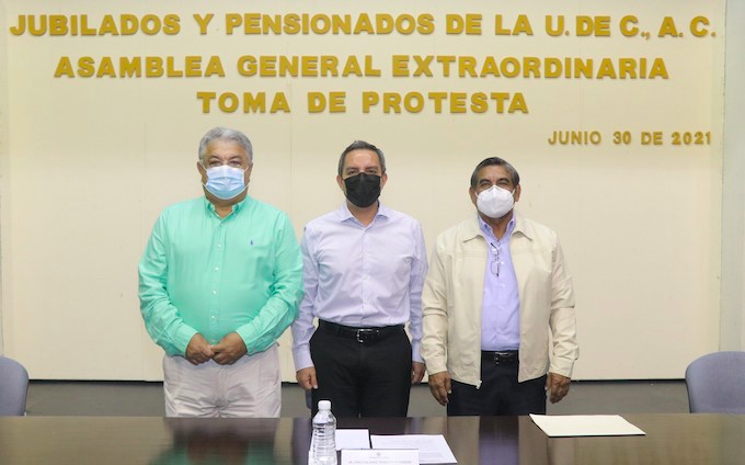 Colima, México, Avanzada (01/07/2021).- Este miércoles, el rector Christian Jorge Torres Ortiz Zermeño tomó protesta al profesor Jesús Campos Sánchez como nuevo presidente de la Asociación...
