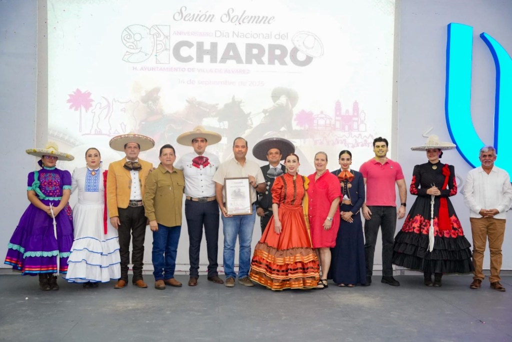 Conmemora Cabildo el Día Nacional del Charro en Villa de Álvarez Villa de Álvarez, Colima, Comunicado (14/09/2025).- En el Día Nacional del Charro en Villa de Álvarez, instituido por Acuerdo del Cabildo en el año 2022, el municipio entregó reconocimientos póstumos a Carlos Hugo Schulte Cividanes “El Charro Schulte”, a Juan José León Gutiérrez “Lobito” y a Ernesto “Charro” Schulte Brizuela, por su entrega al Deporte Nacional por Excelencia y la incansable promoción que siempre hicieron de esa actividad. En el Salón Presidentes de la Casa de la Cultura de Villa de Álvarez, la Alcaldesa Tey Gutiérrez Andrade indicó que en la Sesión Solemne de este domingo, en la que además se conmemora el 91 aniversario del Día Nacional del Charro en México, el Ayuntamiento de Villa de Álvarez exalta la figura de charros y escaramuzas por su entrega, su pasión y amor por la máxima expresión de mexicanidad. ”Villa de Álvarez es tierra de amplio futuro y una identidad añeja. Somos poseedores de una exquisita cultura que resume la rica diversidad de una historia por la que trabajamos para asegurar su reconocimiento, valoración y transmisión a futuras generaciones”, expuso la Presidenta Municipal. Durante la Sesión Solemne también se entregaron reconocimientos por su destacada trayectoria e impulso al Deporte Nacional por Excelencia, a la Escuela de Charros infantil y juvenil Caminó Real de Colima, a Heliodoro Salvador Novela Gálvez “Lolo” y a Jaime Sánchez de la Madrid. Victor Chávez Sánchez, Presidente de la Unión de Asociaciones de Charros del Estado de Colima, apuntó que este 14 de septiembre se celebra la escencia, cultura y herencia de los abuelos, que ahora se conserva y transmite a las nuevas generaciones, por ello “este día nos recuerda que somos protectores de un legado que debemos continuar”. A la Sesión Solemne del Cabildo asistieron representantes de las asociaciones de Charros Camino Real, Hacienda El Alpuyeque, Rancho El Alpuyequito, Rancho El Tecolote, Arrieros de Colima; las instructoras Hermanas Vargas, de Adelitas de la Villa; las escaramuzas Flor de Filigrana, la Escuela de Charrería Camino Real; el Impulsor del Día Nacional del Charro en Villa de Álvarez, Gonzalo Verduzco; Katia I y Nailea I, reina de la Unión de Asociaciones de Charros del Estado de Colima y reina infantil y juvenil de esa Unión de Asociaciones; la Delegada de Escaramuzas en Colima, Sofía Larios Alcaraz; la diputada local Sofia Peralta; los expresidentes municipales Luis Gaitán, Felipe Cruz y Ramón García Contreras, además de los dirigentes de CMIC, Edgar Cruz, y de CANACO, Gabriela Gómez Brun.
