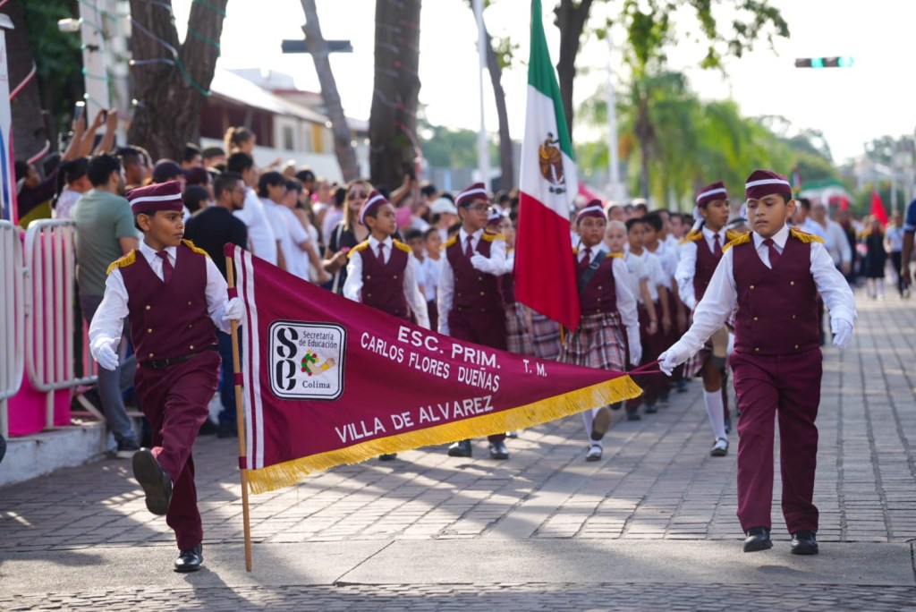 Saldo blanco en Marcha, Grito de Independencia y tres primeros días del Tercer Festival del Mariachi Villa de Álvarez, Colima, Comunicado (16/09/2025).- Un total de dos mil personas marcharon la mañana de este martes en Villa de Álvarez, durante el Desfile Cívico y Militar conmemorativo por el 215 aniversario del Inicio de Independencia. Los contingentes recorrieron las avenidas General Manuel Álvarez y J. Merced Cabrera, desde la calle Guillermo Prieto hasta la Unidad Deportiva “Profesor Gil Cabrera Gudiño”, en donde no se registró percance alguno. La Presidenta Tey Gutiérrez, luego de recibir el parte de novedades del Desfile por Inocencio Guzmán, Director de Seguridad Pública, informó que igualmente se registró saldo blanco la noche del Grito de Independencia y los tres primeros días de la Tercera Edición del Festival del Mariachi. Previo al inicio del Desfile, el Ayuntamiento de Villa de Álvarez realizó una ceremonia cívica conmemorativa del Inicio de la Guerra Independentista, en la que la Presidenta Municipal Tey Gutiérrez hizo un llamado a la unidad como valor primordial que debe estar presente cada día en la vida de todas y todos. ”Unidad para recuperar la paz social y la seguridad, unidad para construir un México generoso y de leyes, unidad para abatir la pobreza y la exclusión, unidad para desterrar la corrupción y construir un futuro digno con educación y salud para todos”, dijo Gutiérrez Andrade en el Jardín Independencia de Villa de Álvarez. Acompañada por representantes de la Secretaría de Educación y Cultura de Gobierno del Estado; de los Sindicatos de la Educación SNTE 6 y SNTE 39; de Carlos Alberto Montes, representante de la Universidad de Colima; la Diputada Local Betzaida Pinzón; el Teniente Coronel Jose Luis Jiménez Rodríguez, representante del General Enrique Hernández Cisneros, Comandante de la 20 Zona Militar, la Alcaldesa encabezó el Desfile en el que marcharon 25 contingentes. En la marcha participaron la Escolta y Banda de Guerra de la Dirección General de Seguridad Pública de Villa de Álvarez, autoridades del municipio y de la Secretaría de Educación y Cultura, supervisores de educación básica y funcionarios del Ayuntamiento. Desfilaron también las escuelas primarias Emilano Zapata TM, José Vasconcelos TM, Griselda Álvarez Ponce de León TM, José S. Benitez TM, Rafael Heredia Velasco TV y Carlos Flores Dueñas TM. Mientras que en el nivel de secundarias desfilaron las escuelas Manuel Álvarez, José Vasconcelos TV, José Vasconcelos TM, Octavio Paz Lozano TV, Secundaria Técnica Número 6 Moisés Saenz Garza TM, General Benjamin Fuentes González TV, General Benjamin Fuentes González TM, Octavio Paz Lozano TM, Secundaria Técnica Número 25 Moisés Saenz Garza TV y Secundaria Estatal Número 13 Miguel Virgen Morfín TV. Las instituciones de educación media superior fueron Inetec, la Universidad Icep Villa de Álvarez y el Bachillerato 16 de la Universidad de Colima. También marcharon efectivos de la Secretaría de Marina, la Dirección General de Seguridad Pública, la Unidad Municipal de Protección Civil, URIE Villa de Álvarez y la Escuela de Monta Hermanas Vargas, con la Escaramuza Charra Adelitas de Villa de Álvarez.