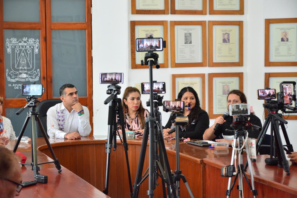 En la conferencia de prensa estuvieron acompañando al presidente municipal Riult Rivera Gutiérrez, la síndica municipal Itzel Sarahí Ríos de la Mora; el director general adjunto de Educación, Cultura y Recreación, Manuel Agustín Trujillo; Miroslava Arellano, quien acudió con la representación de Gilda Glenda Callejas Azoy, directora de Difusión Cultural de la universidad de Colima; Pastora Ferráez Lepe y Adelina Chávez Ríos, del Colectivo Griselda Álvarez Ponce de León
