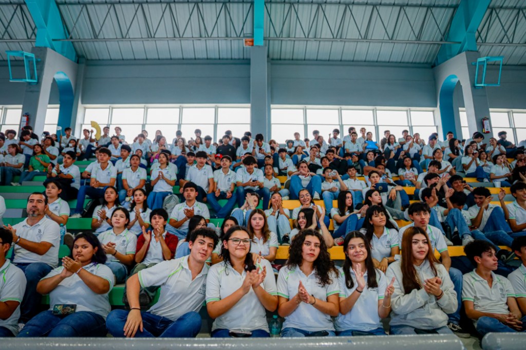 Colima, México, Comunicado (04/10/2025).- Esta semana, como parte de los festejos por el 47 aniversario de creación del Bachillerato No.8 de Manzanillo, el rector de la Universidad de Colima, Christian Jorge Torres Ortiz Zermeño, ofreció la charla “Competencias para un liderazgo que transforma”, ante cientos de jóvenes congregados en el Polideportivo del campus San Pedrito.