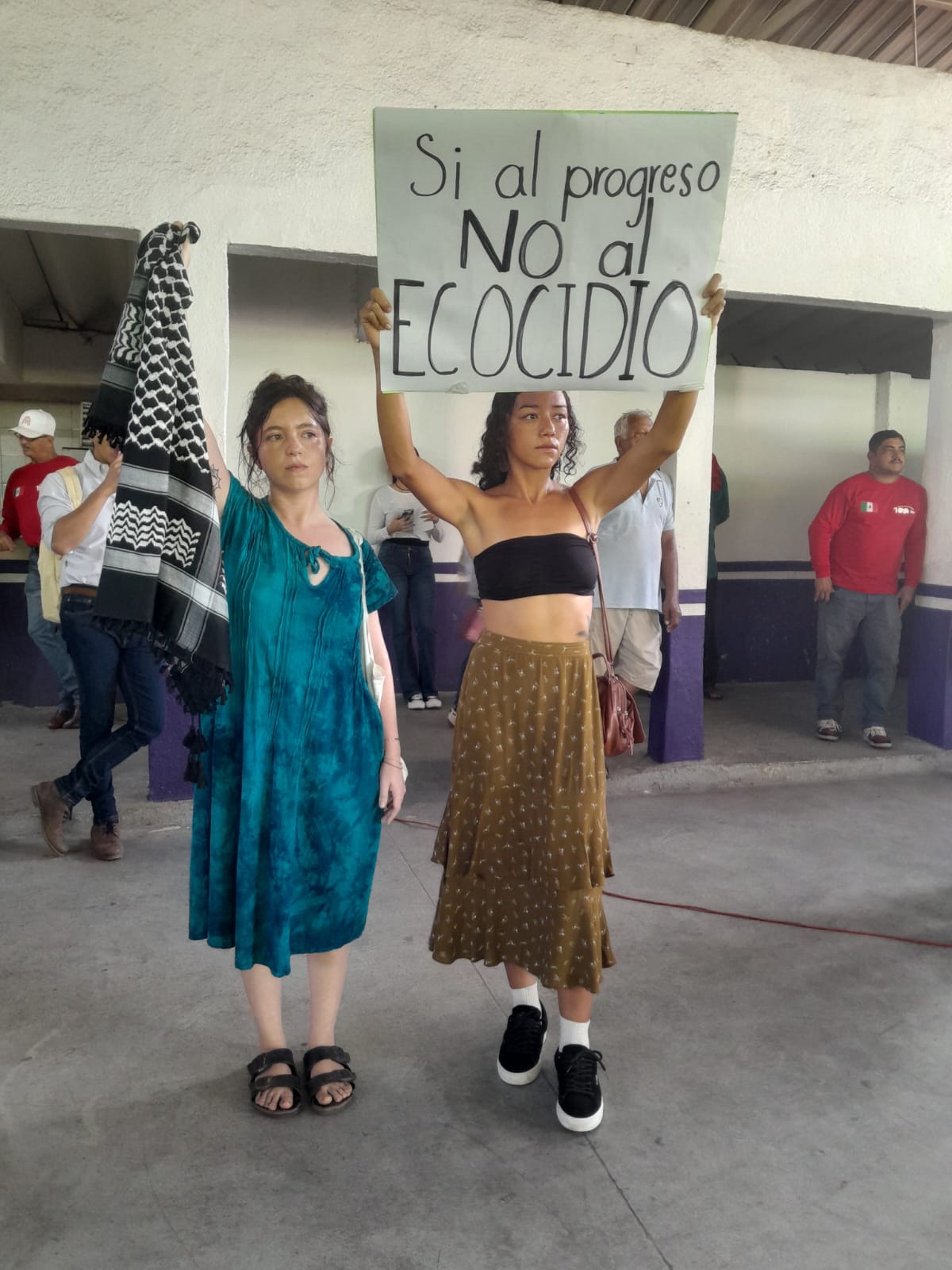 *En la fotografía: opositores a la ampliación del puerto de Manzanillo durante la consulta pública.