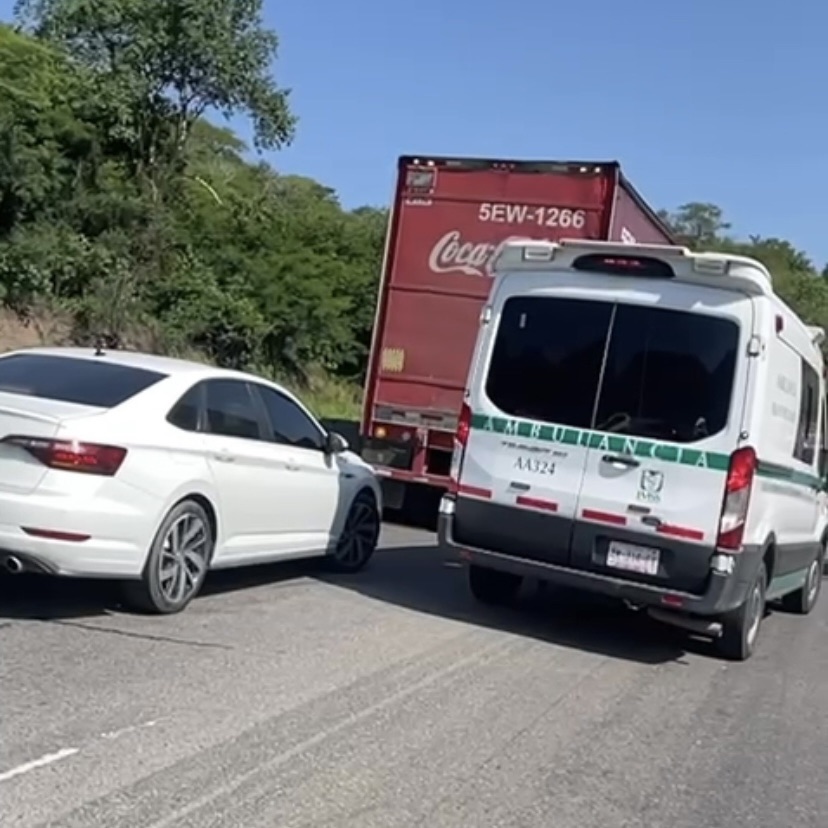 Ambulancia del IMSS queda varada por un accidente en la carretera Manzanillo-Colima