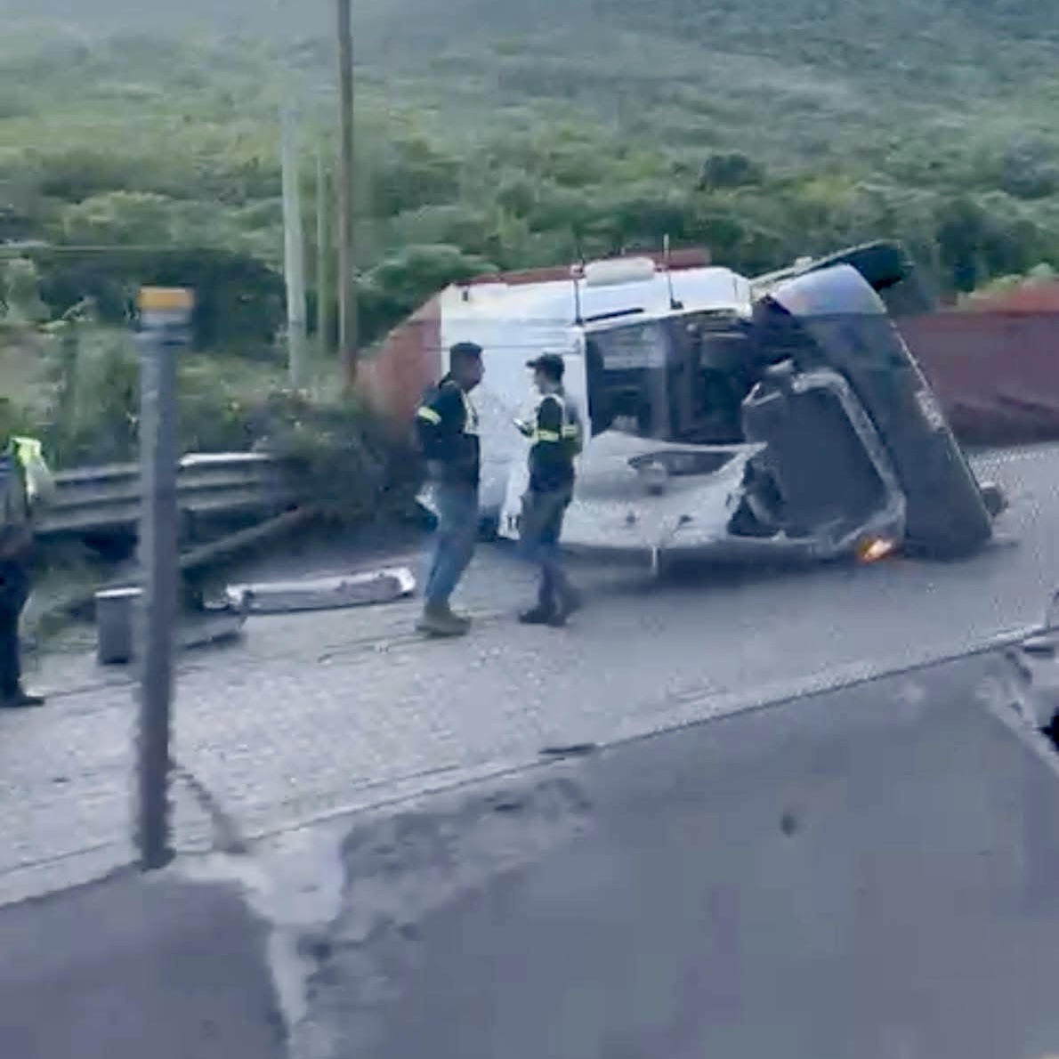 En el lugar permanecen brigadistas de la UEPC Colima, así como elementos de la Guardia Nacional (GN), quienes coordinan las labores de limpieza y retiro de la pesada unidad. Una grúa de gran capacidad realiza maniobras para mover los contenedores y restablecer la circulación lo antes posible.