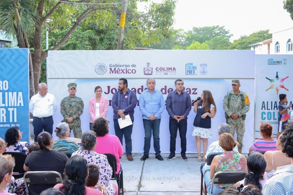 Colima, México, Comunicado (17/10/2025).- El Presidente Municipal de Colima Ríult Rivera Gutiérrez, encabezó el desarrollo de las Jornadas de la Paz, en donde participaron autoridades de los tres niveles de gobierno, en la Unidad Habitacional El Mezcalito, de la capital del Estado.