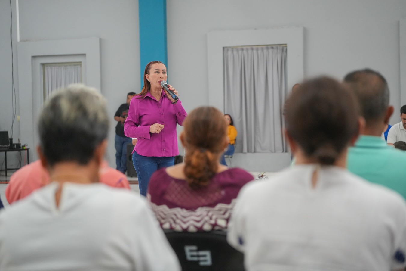 Ante los liderazgos vecinales con quienes se reunió en el Salón Presidentes de la Casa de la Cultura, la Alcaldesa compartió información de los programas y acciones de gobierno, además escuchó la problemáticaa y necesidades que le fueron planteadas.