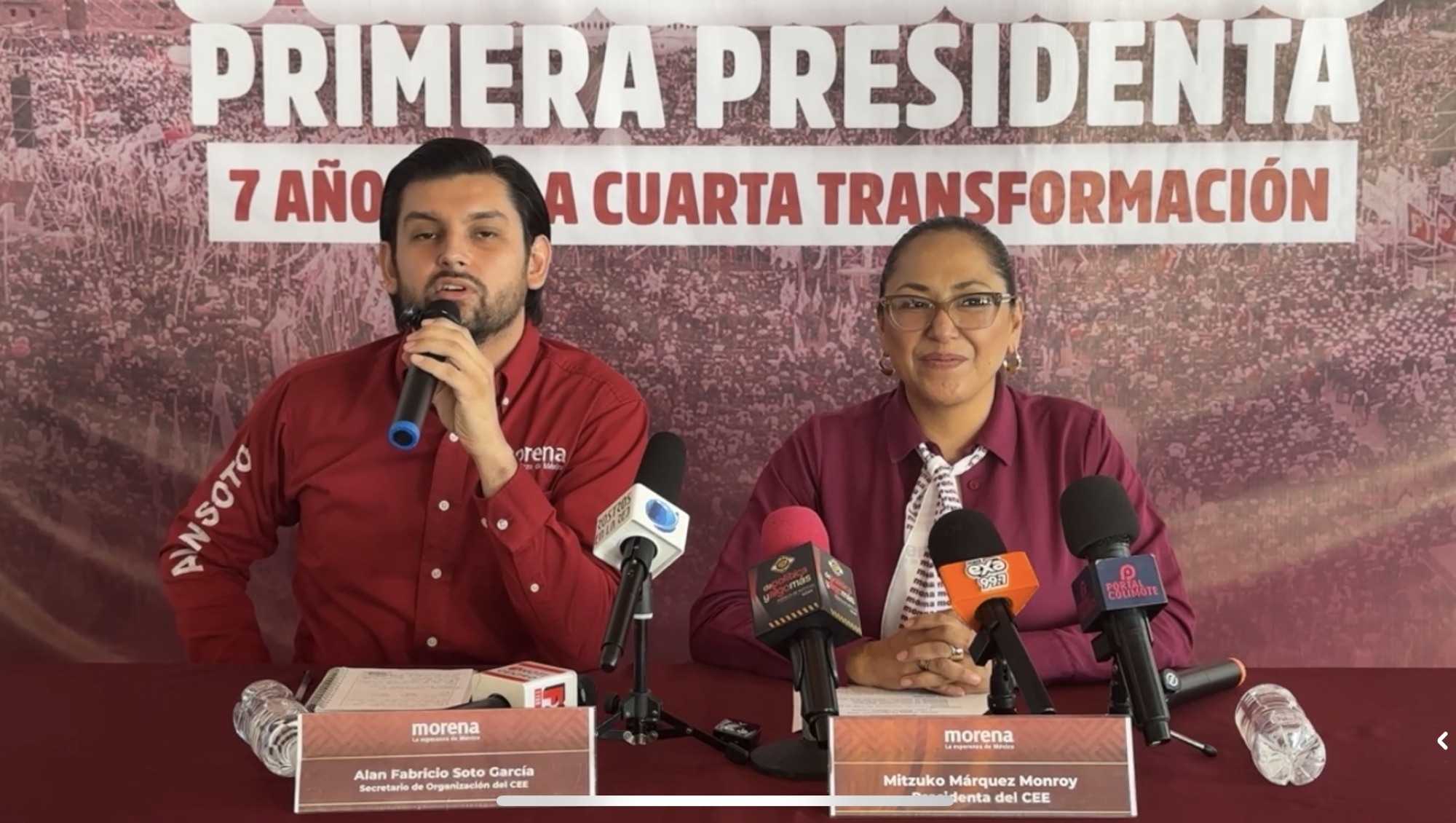Colima, México, Avanzada (21/10/2025).– En medio de la conferencia de prensa semanal del partido Morena en Colima, la presidenta estatal del instituto político, Mitzuko Márquez Monroy, presentó este lunes al secretario de organización, Alan Soto, quien emitió comentarios discriminatorios por motivo de edad en contra de figuras políticas de la oposición.