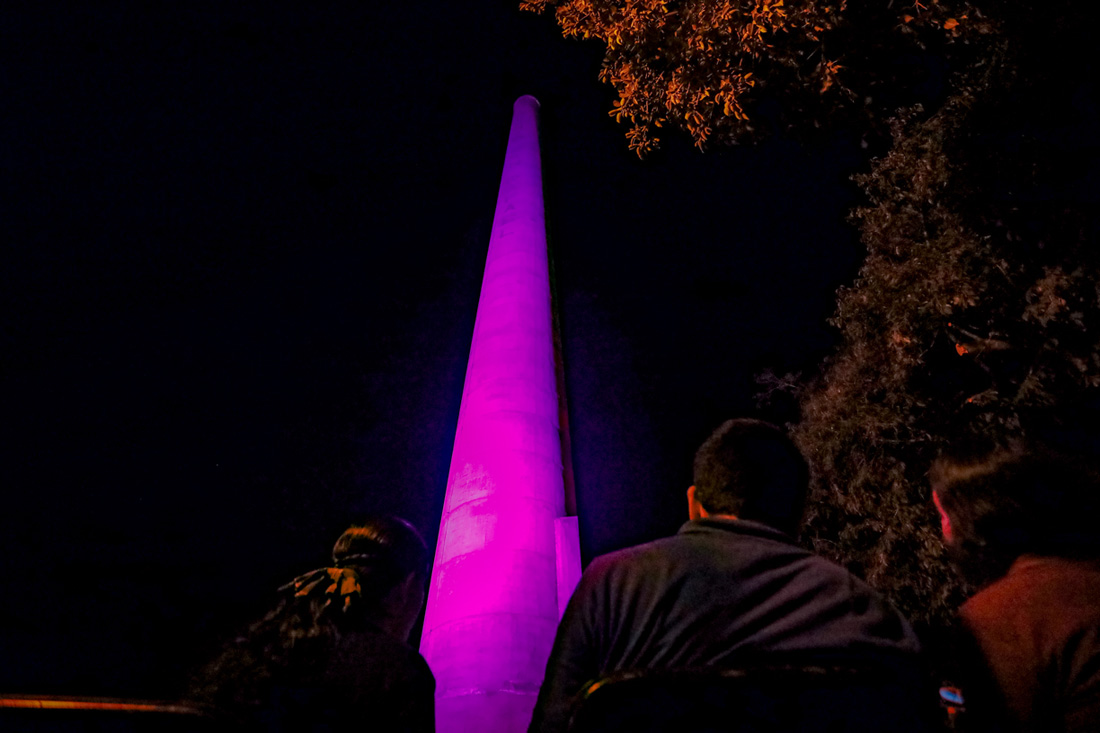Colima, México, Comunicado (23/10/2025).- El martes por la noche, las y los universitarios iluminaron de rosa el chacuaco del antiguo ingenio de San Rafael que se encuentra en instalaciones del campus Coquimatlán. Con este acto, se busca que la gente tome conciencia de la importancia que tiene la detección temprana y oportuna del cáncer de mama. El evento es parte de la Semana Universitaria Contra el Cáncer de Mama que promueve el Voluntariado de la Universidad de Colima.