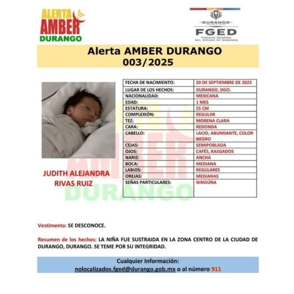 Hasta el momento, la Fiscalía General del Estado emitió la ficha de búsqueda correspondiente y activó la Alerta Amber 003/2025, con el objetivo de localizar tanto a la menor como a la presunta responsable de la sustracción.
