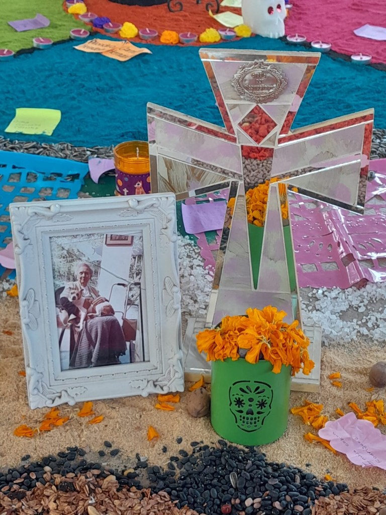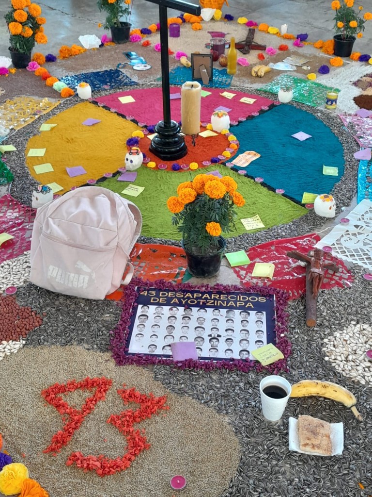 Con la participación de estudiantes del diplomado y de la licenciatura sabatina de la institución, la ofrenda estuvo dedicada, entre otras personas, a los 43 normalistas de Ayotzinapa, a las madres buscadoras, así como a otras mujeres como la fundadora de la escuela, Margarita Septién Rul; la religiosa Ángela Escobosa Haas y la primera gobernadora, Griselda Álvarez Ponce de León.