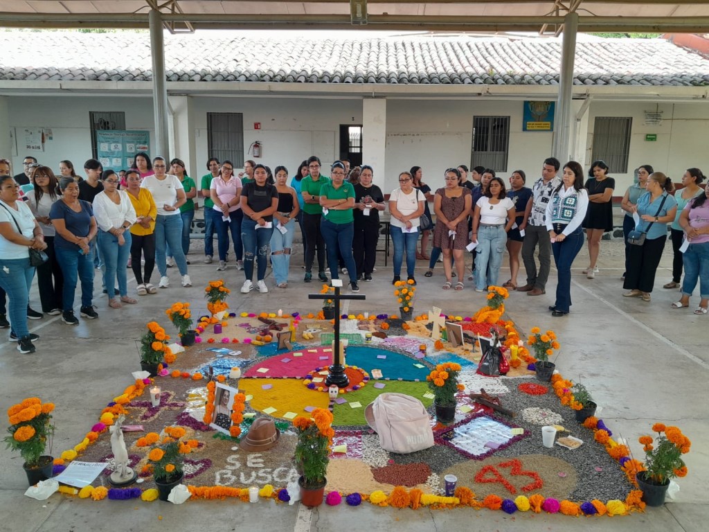 Comala, México, Avanzada (03/11/2025).- Los casos de feminicidios, desapariciones y asesinatos que han afectado al estado y al país en los últimos años, fueron recordados en la ofrenda por el Día de Muertos colocada el fin de semana por la comunidad educativa de la Escuela de Trabajo Social Vasco de Quiroga.