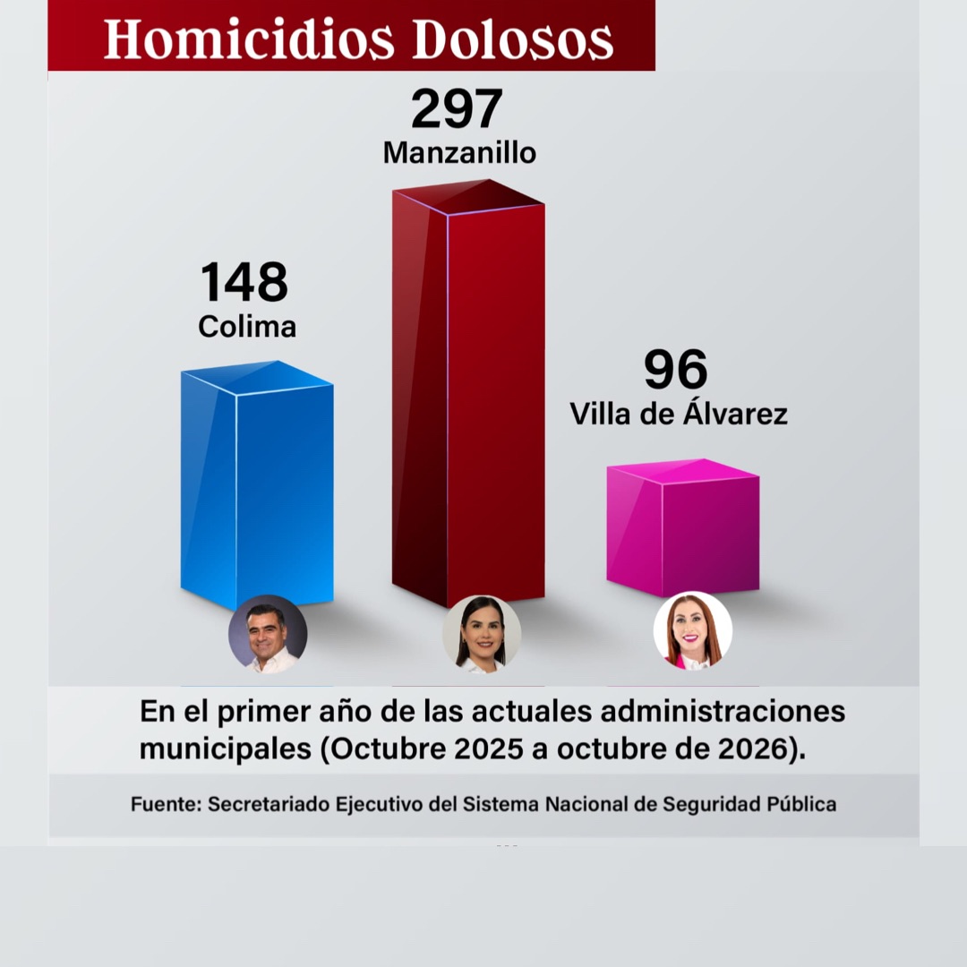 Colima, México, Avanzada (21/11/2025).- Transcurrido el primer año de las actuales administraciones municipales en el estado de Colima, Manzanillo es, con mucho, el municipio más violento de toda la entidad, pues desde octubre de 2024, cuando asumió como presidenta municipal la morenista Rosa María Bayardo Cabrera, esa ciudad y puerto registra 297 homicidios dolosos.