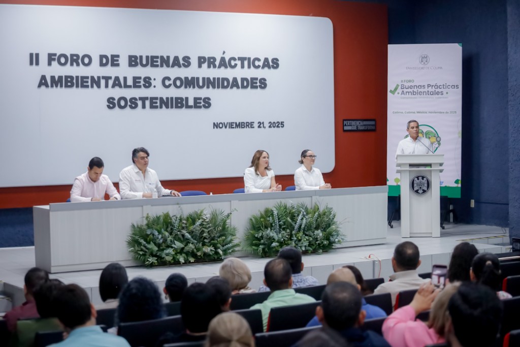 Colima, México, Comunicado (21/11/2025).- Con la presencia de alumnos, docentes y personal universitario dedicado a la gestión ambiental, este viernes se llevó a cabo la inauguración del II Foro de “Buenas Prácticas Ambientales: Comunidades Universitarias Sostenibles”, en el auditorio de la Biblioteca de Ciencias de la Universidad de Colima. En este foro, bachilleratos, facultades y dependencias compartirán las prácticas que realizan en sus áreas o comunidades en temas como energía, agua, cambio climático, educación ambiental y gestión de residuos.