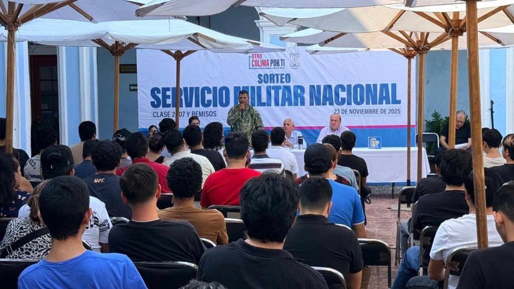 Colima, México, Avanzada (23/11/2025).- Este domingo, se llevó a cabo el sorteo del Servicio Militar Nacional para la clase 2007 y remisos en el patio central de la Presidencia Municipal de Colima, con la participación del secretario del Ayuntamiento, Francisco Ánzar Herrera, en representación del presidente municipal Riult Rivera, del Teniente Coronel Constantino Martínez Larios, del 29 Batallón de Infantería, así como los jóvenes conscriptos que cumplirán con esta obligación durante el próximo año 2026.