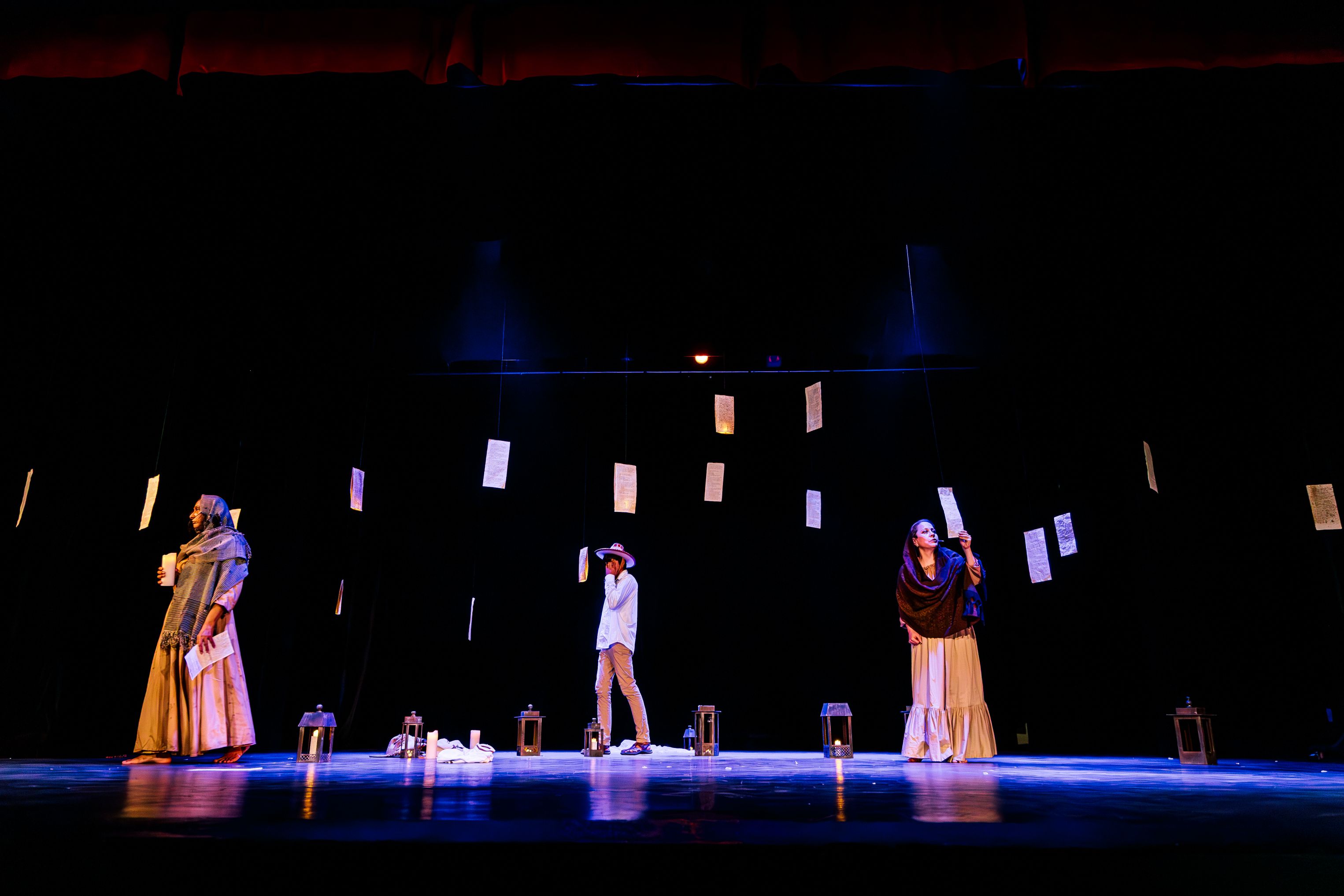Colima, México, Comunicado (28/11/2025).- Una propuesta artística que hermanó el teatro, la danza, la música, el canto y la literatura, se presentó esta semana en el Foro “Pablo Silva García” con el espectáculo “El Murmullo Hecho Cuerpo”, con la participación de Carmen Solorio, Chuy Bautista, Mariana Corona, Jorge Hernández y Erwin Pérez, bajo la dirección de Héctor Castañeda. La puesta en escena busca ser una invitación, principalmente dirigida a los jóvenes universitarios, a la lectura de la inmortal novela Pedro Páramo, de Juan Rulfo.