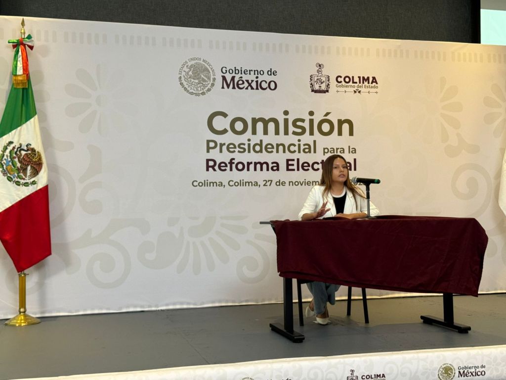 Colima, México, Comunicado (30/11/2025).- El jueves 27 de noviembre se realizó la Audiencia pública en Colima para recibir propuestas de la reforma electoral, en la que participaron como ponentes Ricardo Vázquez Meza y María Fernanda García Zarate, ambos estudiantes del quinto semestre de la licenciatura en Administración Pública y Ciencia Política en la Facultad de Ciencias Políticas y Sociales de la Universidad de Colima.