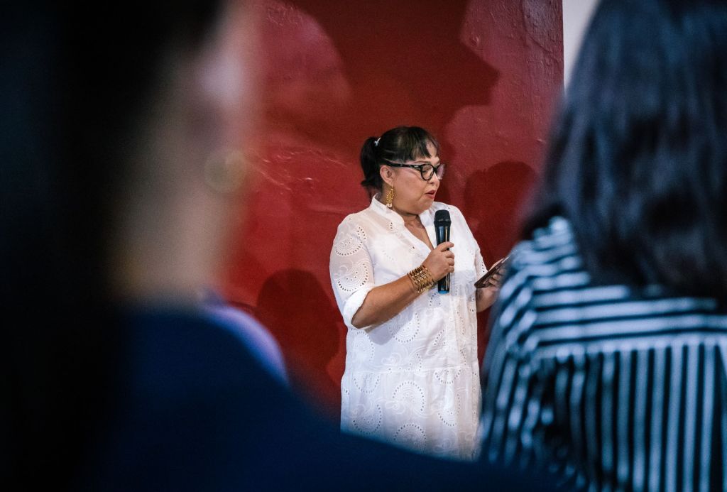 Luego de dar la bienvenida, Ada Karmina Benavides agradeció la presencia de Mayra González de quien dijo, tiene la encomienda de promover las políticas de igualdad y la perspectiva de género en la U de C, “pero también es una académica comprometida, activista, enseña y expone tallereando con sus comunidades y ha realizado un gran trabajo en la reflexión de las maternidades”.