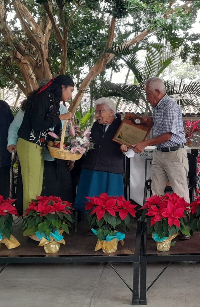 Comala, Colima, Comunicado (08/12/2025).- En el marco de los festejos por el 63 aniversario de su fundación, la Escuela de Trabajo Social Vasco de Quiroga otorgó la presea “Ángela Escobosa Haas” a la religiosa Sabina Ramos, integrante de la congregación Misioneras de la Eucaristía, “por su opción de consagrar su vida, sus dones y sus capacidades al servicio de las y los demás, con sencillez, entrega total y sin regateos”.