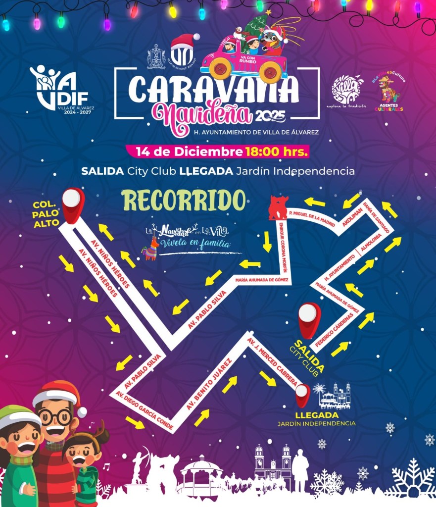 ‎Villa de Álvarez, Colima, Comunicado (10/12/2025).- El Ayuntamiento de Villa de Álvarez que encabeza la Presidenta Tey Gutiérrez invitó a disfrutar de la Caravana Navideña 2025, que recorrerá las principales avenidas de la cabecera municipal, llevando alegría y diversión a todas las familias.