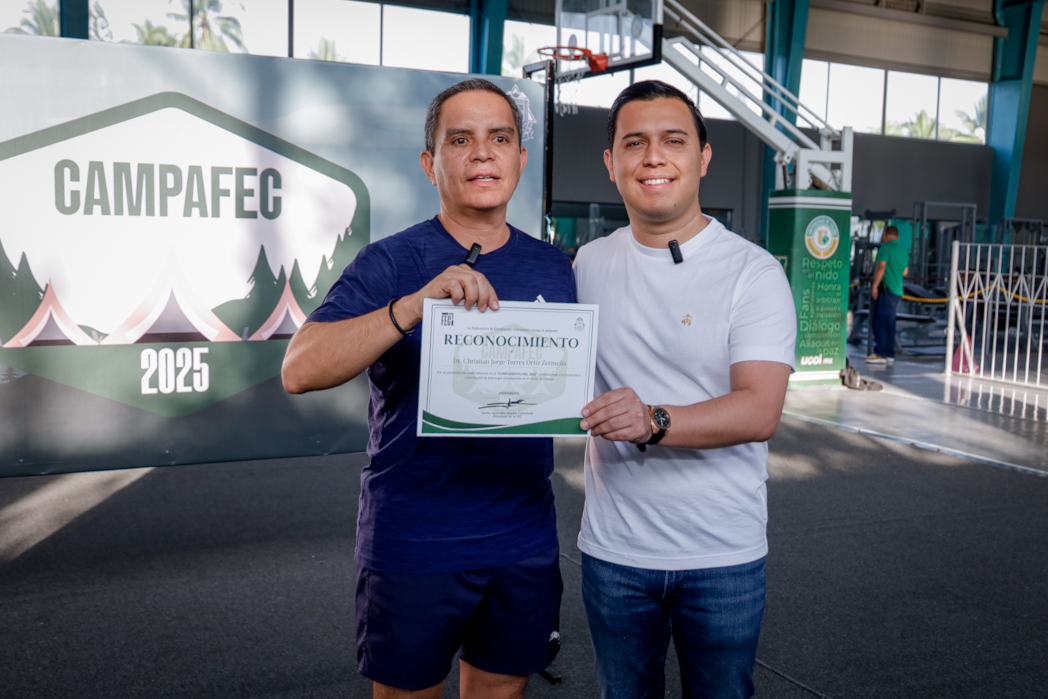 Colima, México, Comunicado (13/12/2025).- Este sábado por la mañana, durante el Campamento FEC 2025, Christian Jorge Torres Ortiz Zermeño, rector de la Universidad de Colima, tuvo un encuentro con poco 120 jóvenes en el que, mediante una charla dinámica, cercana y amena, reflexionó y dio consejos prácticos sobre el ejercicio del liderazgo a partir de sus propias experiencias, primero como docente y ahora como rector.