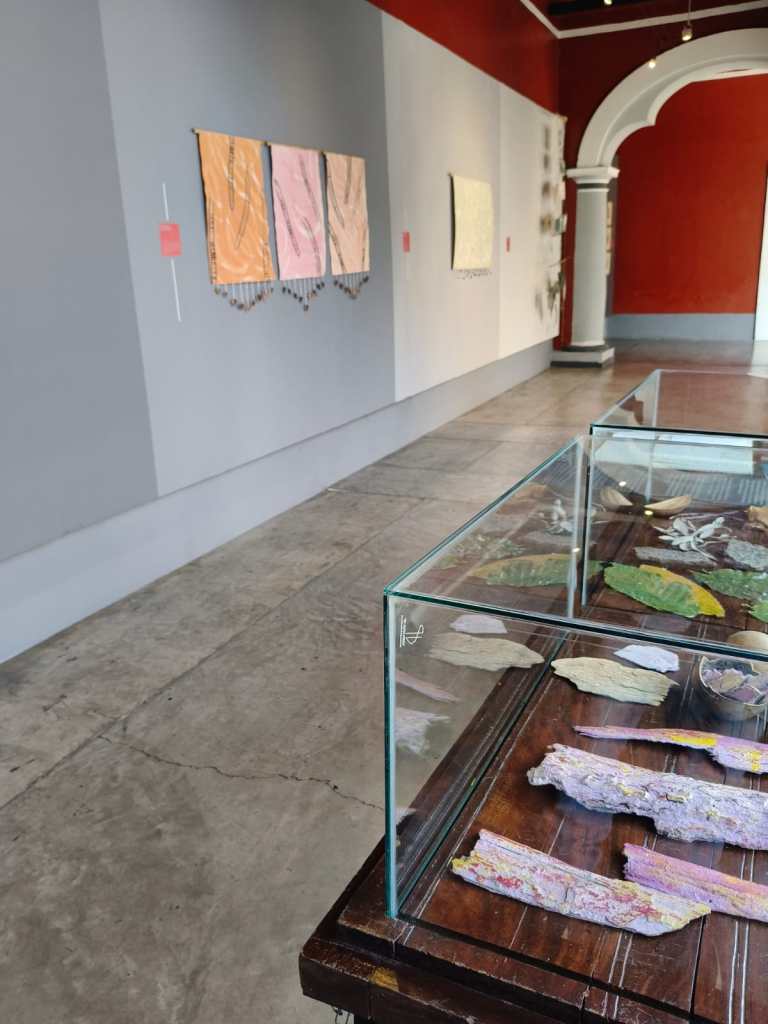 Las estampas del estudio organográfico de la artista expositora han dado lugar a piezas de singulares formatos y cualidades estéticas que, a través del collage, la monotipia y el transfer, nos muestran no sólo las facultades de la vegetación como material de creación, sino que también nos remiten al paisaje y la flora colimotes, para contemplarles desde el ámbito creativo de las artes gráficas.