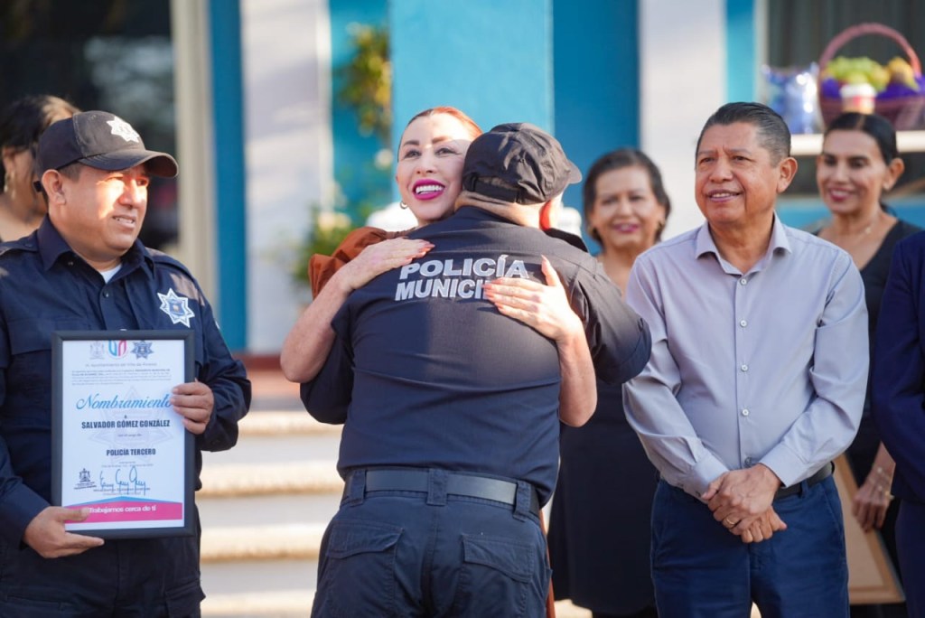 A nombre de las y los policías, Johana Jhazmy Cortez, expresó que ser policía en Villa de Álvarez es servir con el corazón, es cuidar las calles, las colonias, “a nuestra gente y a nuestras familias. Es estar presentes en los momentos más difíciles de la ciudadanía y responder con valor, aun cuando el cansancio pesa y el riesgo es constante”.