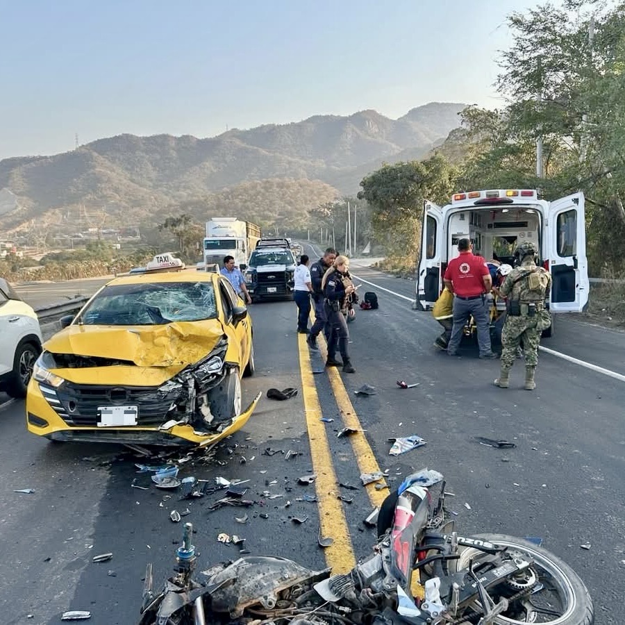 Accidente entre taxi y motocicleta deja una persona lesionada en la Manzanillo–Colima
