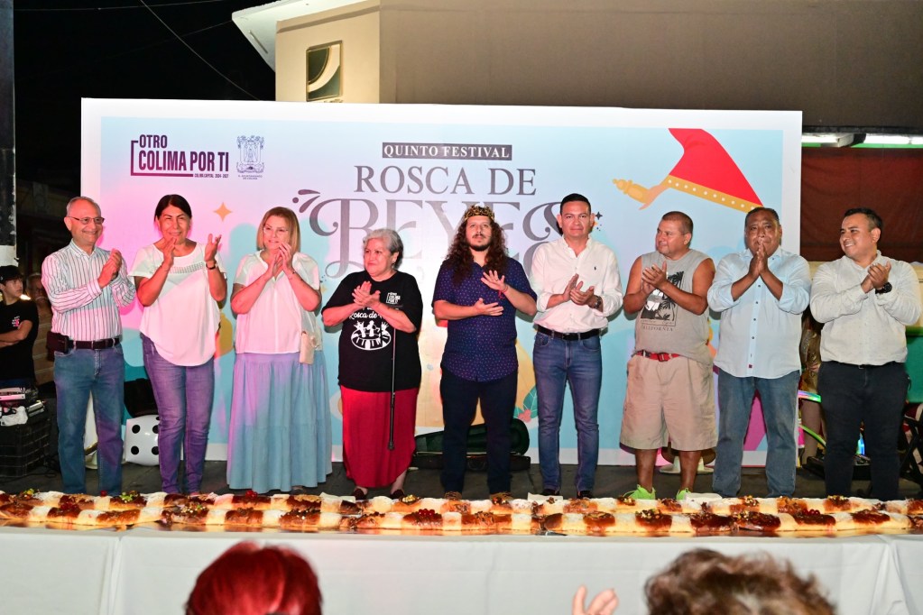 Colima, México, Comunicado (07/01/2026).- El Ayuntamiento de Colima, que encabeza el alcalde Riult Rivera Gutiérrez, partió la Rosca de Reyes más grande del municipio, al culminar el 5o. Festival Rosca de Reyes, que la noche de este 6 de enero llegó a su culminación.