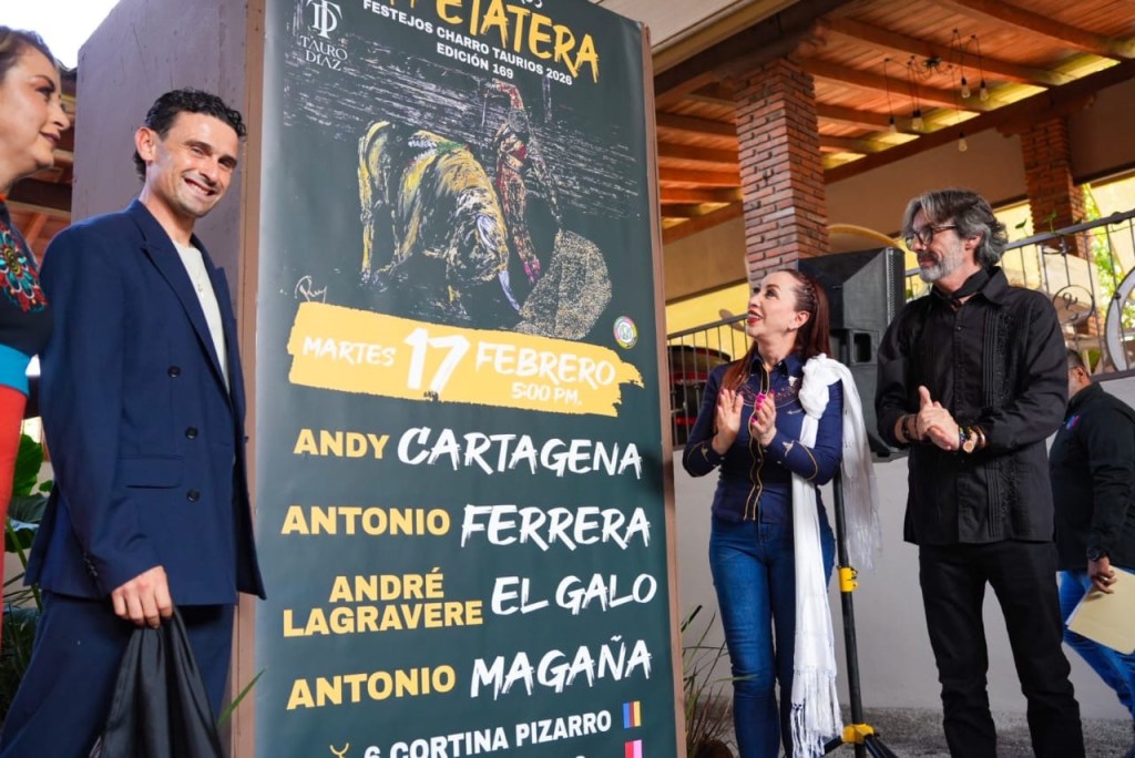 Villa de Álvarez, Colima, Comunicado (09/01/2026).- En rueda de prensa, la Presidenta Tey Gutiérrez Andrade y el empresario taurino Arturo Díaz Pérez “El Coyo”, acompañados por los toreros Uriel Moreno El Zapata y André El Galo, dieron a conocer el Cartel Taurino para la Edición 169 de los Festejos Charro Taurinos Villa de Álvarez 2026.