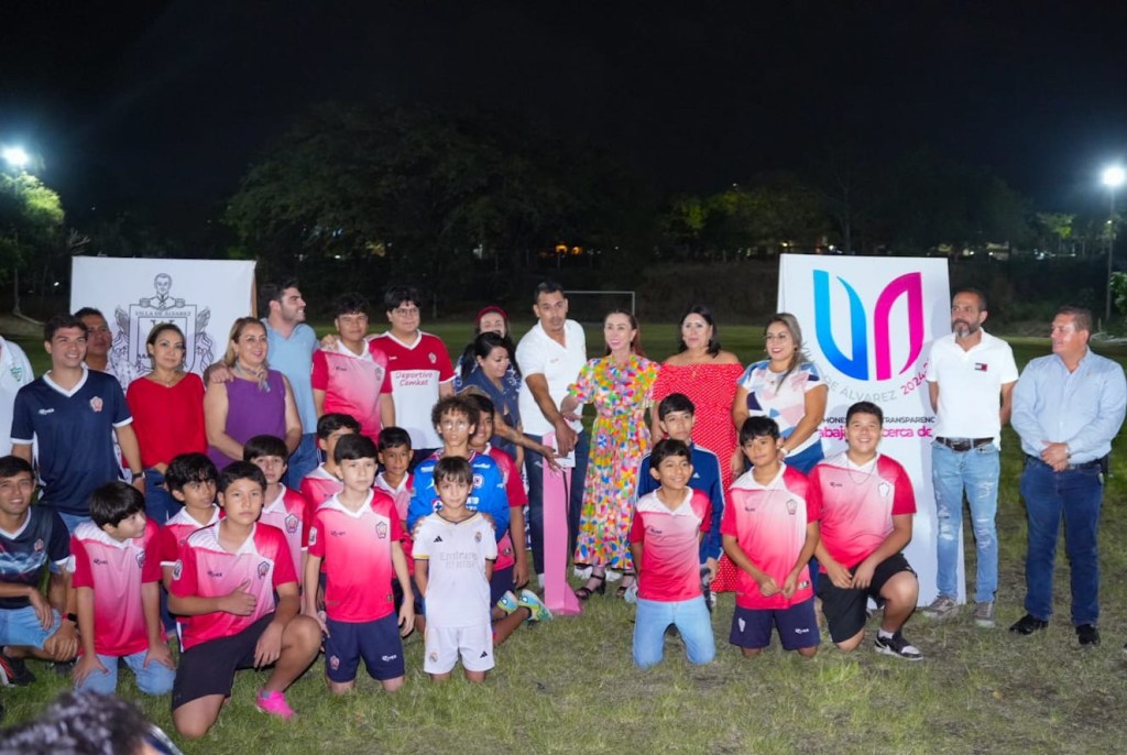 Esta acción forma parte del programa exitoso Invasión Deportiva, implementado en Villa de Álvarez desde hace 4 años Villa de Álvarez, Colima, Comunicado (10/01/2026).- La Presidenta Tey Gutiérrez Andrade entregó a deportistas y a vecinos y vecinas la obra de equipamiento de alumbrado público en la cancha de futbol de la colonia Alfredo V. Bonfiil, obra realizada con recursos del Fondo de Apoyo a la Infraestructura Social Municipal. Acompañada por Lucero Rivera Martínez, del Comité de Participación Social que vigiló la adecuada realización de la obra, y por el entrenador Rafael Campuzano, la Alcaldesa señaló que el programa Invasión Deportiva, implementado por su gobierno desde hace cuatro años, es muy importante, porque no sólo ilumina canchas, lleva actividades para el desarrollo de habilidades de niñas, niños, jóvenes y personas adultas que gustan de la práctica deportiva. ”Con la entrega de las luminarias refrendamos nuestro compromiso de iluminar espacios deportivos para que las familias aprovechen en todo momento las canchas, pues el deporte, además de los beneficios a la salud de quienes lo práctican, sirve para generar comunidad”, expresó Gutiérrez Andrade. La obra de equipamiento de alumbrado público en la cancha de futbol de la colonia Alfredo V. Bonfil consistió en la instalación de 10 reflectores LED, en la que se invirtieron 132 mil 738 pesos. Esta obra llega también a las canchas de las colonias Tabachines Norte, Solidaridad Norte, Arboledas del Carmen Juan José Ríos II (Dragones Rojos), Villas de Oro y Ramón Serrano, cuya inversión total es de 488 mil 336 pesos. El entrenador Rafael Campuzano agradeció a Tey Gutiérrez por atender ese espacio deportivo, que aunque ya había tenido alumbrado en el pasado, no es de la misma calidad que el que ahora se está entregando. ”Vamos a cuidar este espacio deportivo en el que ya tenemos más de 16 años trabajando y por eso le tenemos muchísimo cariño”, dijo el entrenador. Lucero Rivera Martínez, del Comité de Participación Social y del Comité de Barrio de la colonia Alfredo V. Bonfil, agradecio a la Alcaldesa por haber cumplido con el alumbrado de la cancha, porque además de servir a los deportistas usuarios de la cancha, también ayuda a generar un entorno seguro A la entrega de la obra asistieron vecinos de la colonias Real Centenario, Alfredo V. Bonfiil Oriente y Lomas de Las Flores; los regidores Adrián López y Mary Rubio, y funcionarios y funcionarias municipales, encabezados por la Secretaria del Ayuntamiento, Lizet Rodríguez.