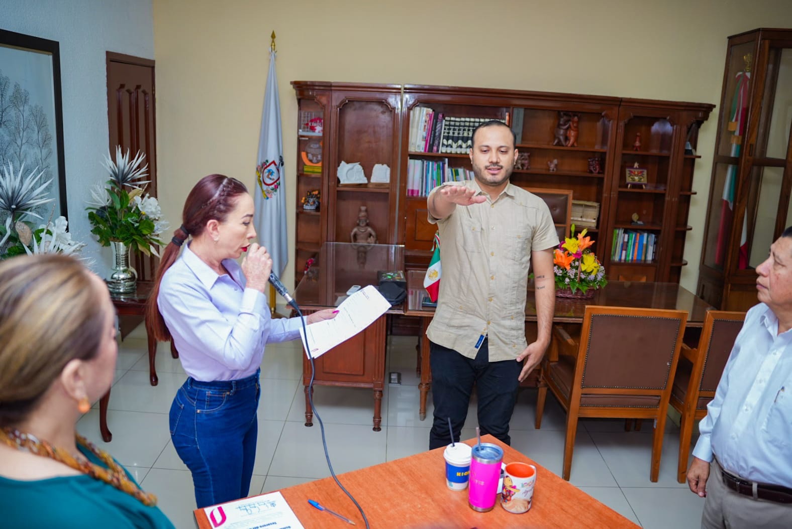 Tras la aprobación de su designación, la Presidenta Municipal le tomó la protesta de ley a Osmar Galileo Rivera Velázquez como Tesorero del Instituto de Festejos Charro Taurinos y Exposiciones de Villa de Álvarez, a quien además le entregó el nombramiento respectivo.