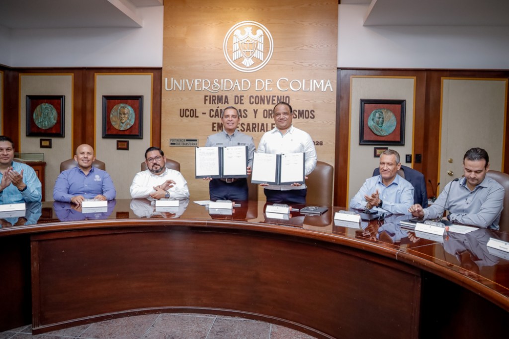 Colima, México, Comunicado (14/01/2026).- Este miércoles, en actos por separado, se llevaron a cabo dos firmas de convenio. La primera fue entre la Universidad de Colima y la Cámara Mexicana de la Industria de la Construcción (CMIC) y la segunda entre la UdeC y la Cámara Nacional de la Industria de Transformación (CANACINTRA). Ambas en la sala de juntas de rectoría.