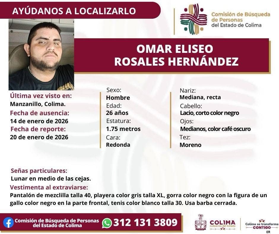 Colima, México, Avanzada (26/01/2026).— Con la voz quebrada, pero firme, Rocío Hernández decidió detener parcialmente el tránsito en la carretera Tecomán–Manzanillo. No lo hizo por provocar, ni por “hacer relajo”, como ella misma aclaró, sino para lo único que hoy le importa: que las autoridades busquen a su hijo, Omar Eliseo Rosales Hernández, desaparecido desde hace 12 días.