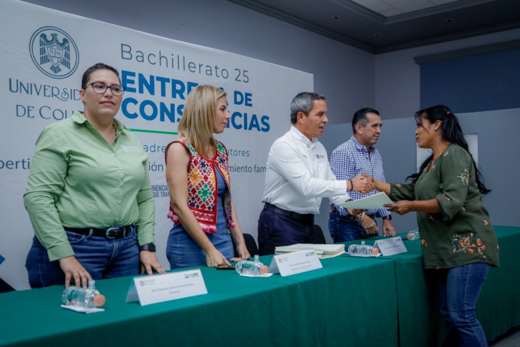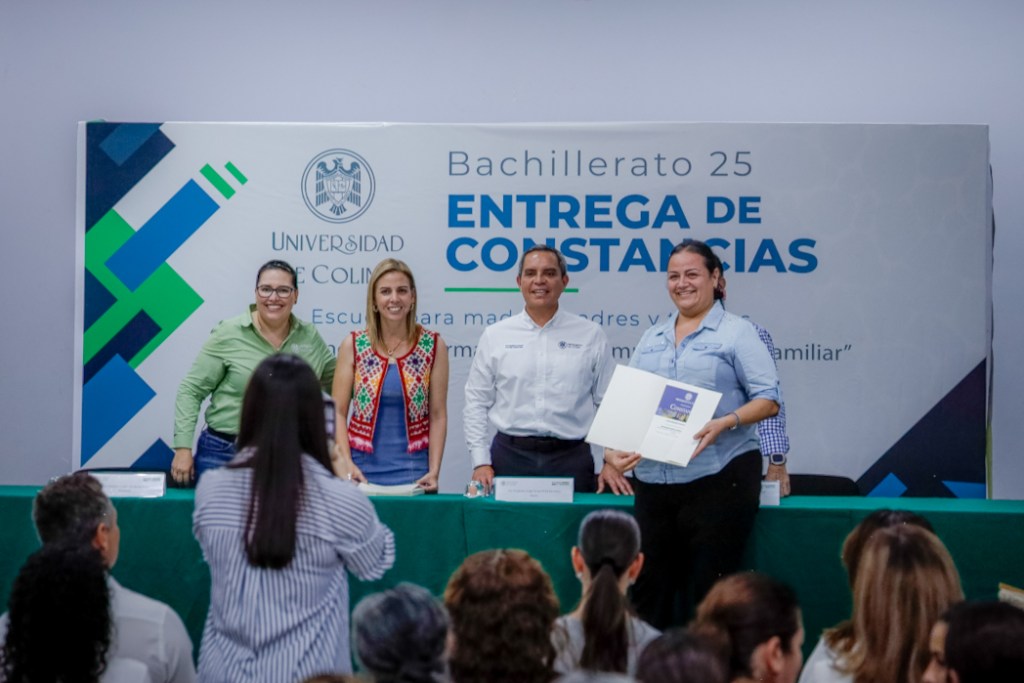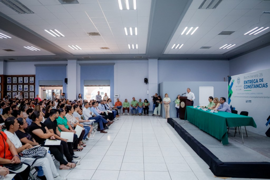 Colima, México, Comunicado (29/01/2026).- Como acto de cierre de la Escuela para Padres, Madres y Tutores del Bachillerato 25 de la Universidad de Colima, este jueves 29 de enero se entregaron 160 constancias a las y los participantes, en una ceremonia realizada en el auditorio de la Casa de la Cultura del Municipio de Comala. Presidieron el evento el rector Christian Jorge Torres Ortiz Zermeño y la presidenta Municipal de Comala, Daniela Orozco Pineda.
