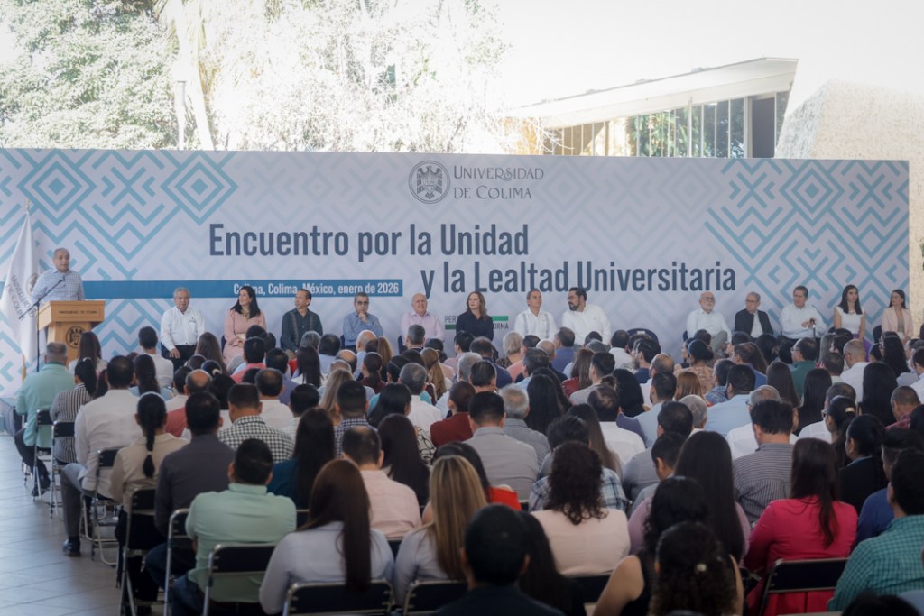 Colima, México, Comunicado (30/01/2026).- “Éste no es un acto protocolario más, es un espacio de reconocimiento colectivo, de memoria institucional y de reivindicación como comunidad universitaria”, dijo la mañana de este viernes 30 de enero el rector de la Universidad de Colima, Christian Jorge Torres Ortiz Zermeño, al dar su mensaje durante el Encuentro por la Unidad y la Lealtad universitaria.