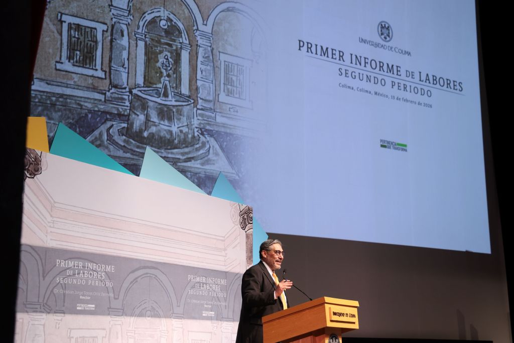 Colima, México, Comunicado (15/02/2026).- El secretario general ejecutivo de la ANUIES, Luis Armando González Plascencia, reconoció el trabajo coordinado de la Universidad de Colima con el sector empresarial y el Gobierno del Estado. La presencia en el informe de los titulares de los poderes del estado y de la iniciativa privada, comentó, “habla de la importancia y del interés que tienen en la comunidad universitaria”.