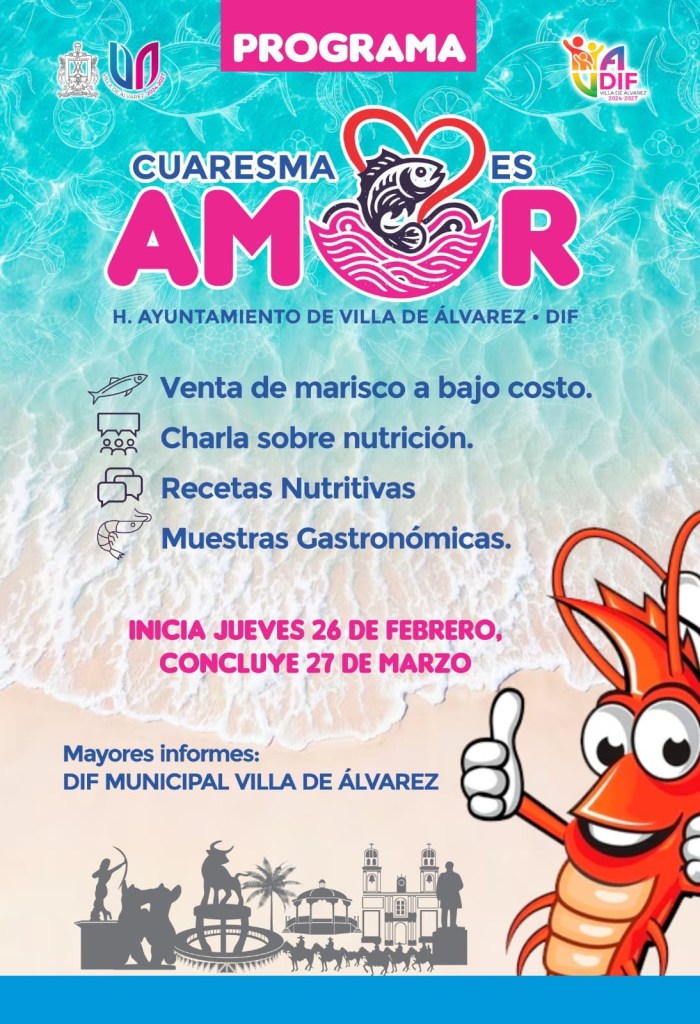 Villa de Álvarez, Colima, Comunicado (24/02/2026).- La Presidenta Tey Gutiérrez Andrade anunció el programa Cuaresma es Amor, con el que el Ayuntamiento y el DIF Municipal de Villa de Álvarez ofrecen gratis paquetes con los insumos necesarios para elaborar ceviche de soya y a precios bajos productos del mar y de la canasta básica.