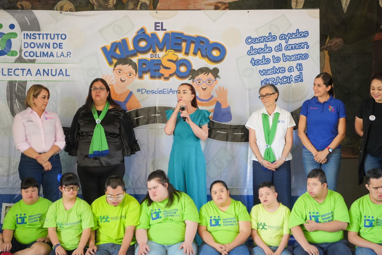 En el evento realizado en el Salón Verde de la Presidencia Municipal, la Presidenta Tey Gutiérrez dijo sentir mucha felicidad y satisfacción por colaborar por quinto año consecutivo desde la Presidencia Municipal de Villa de Álvarez con el Instituto Down de Colima a través de la colecta Kilómetro del Peso.