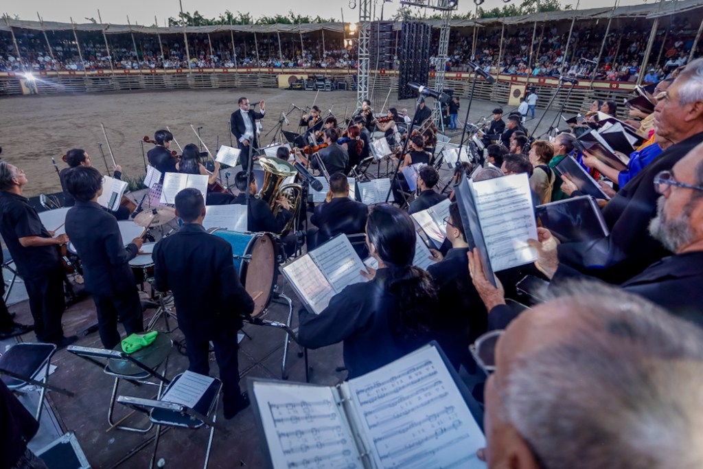 Colima, México, Comunicado (07/03/2026).- Ante más de 3 mil 700 personas, las agrupaciones universitarias: Mariachi, Coro y Orquesta Sinfónica de la Universidad de Colima, junto con el tenor Felipe Castellanos y el músico Jorge Hernández, protagonizaron este viernes por la tarde el concierto “La petatera vibra en pasodoble”, velada que celebró la tradición, identidad y espíritu de las fiestas regionales en la emblemática Petatera de Villa de Álvarez.