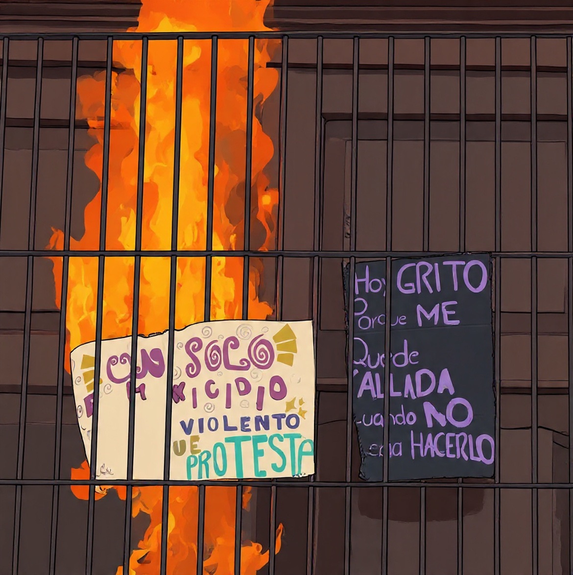 Desde el interior, elementos de seguridad respondieron con chorros de agua y extintores para sofocar el fuego. A diferencia de la movilización del año pasado, en esta ocasión no se reportó el uso de gas lacrimógeno contra las manifestantes.
