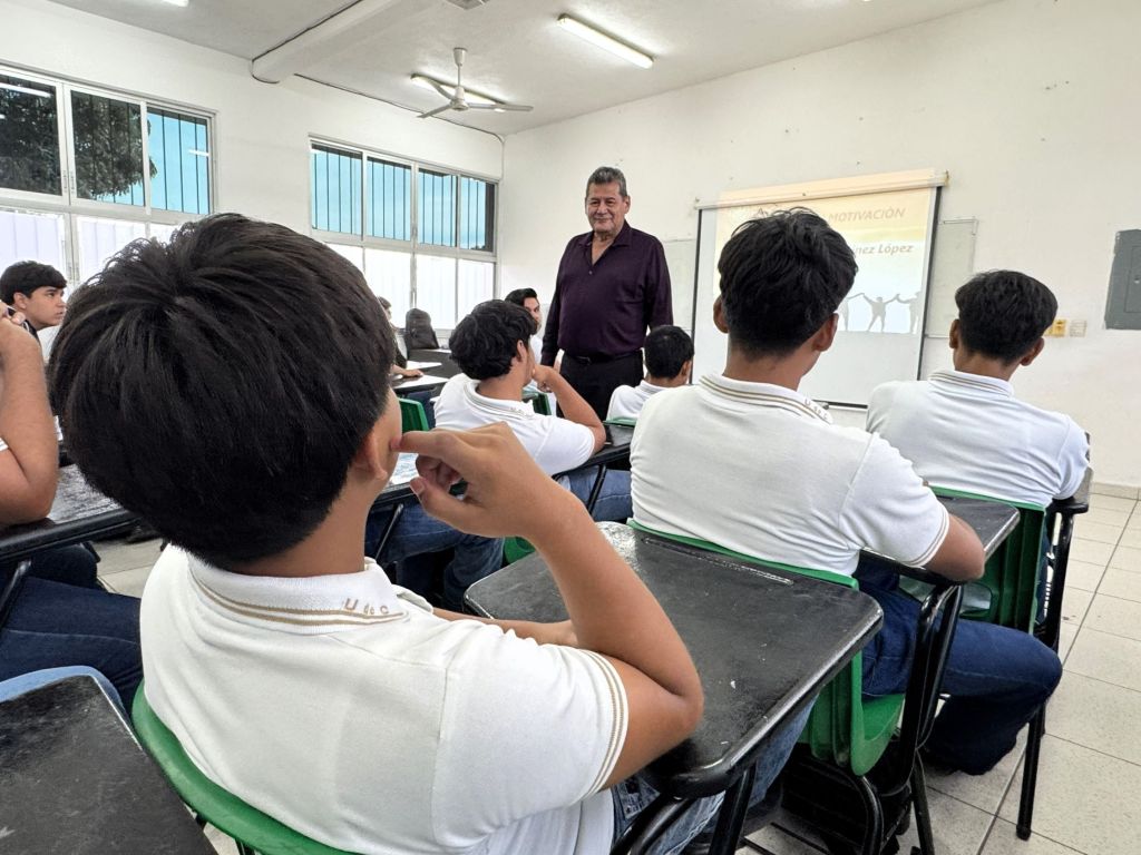 Colima, México, Comunicado (16/03/2026).- Estudiantes varones del Bachillerato 7 de la Universidad de Colima, ubicado en la cabecera municipal de Armería, participaron hace unos días en una conferencia impartida por el psicólogo José Salvador Martínez, quien invitó a los jóvenes a reflexionar sobre la motivación personal, el sentido de vida y la importancia de construir su propio proyecto.