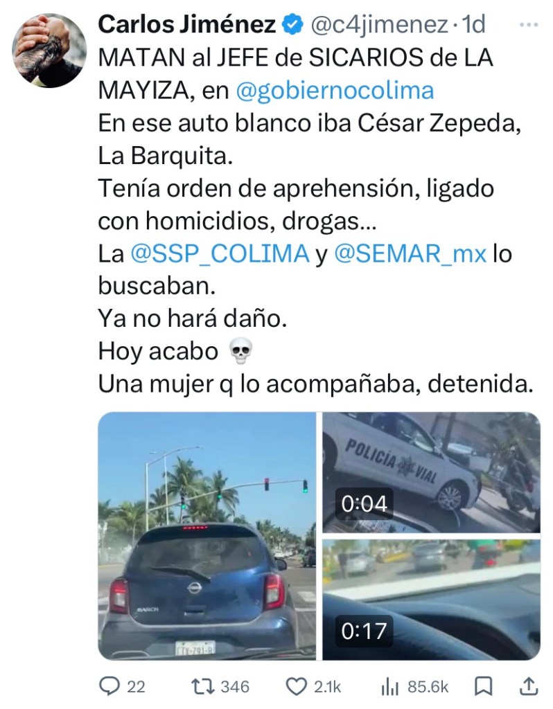 Seis días después, en un hecho distinto, fue abatido César “N”, alias “La Barquita”, señalado como jefe de sicarios de “La Mayiza”, una facción vinculada al Cártel de Sinaloa. La información fue difundida por el periodista de nota roja Carlos Jiménez, quien indicó que el sujeto contaba con orden de aprehensión y era investigado por delitos relacionados con homicidio y narcotráfico.