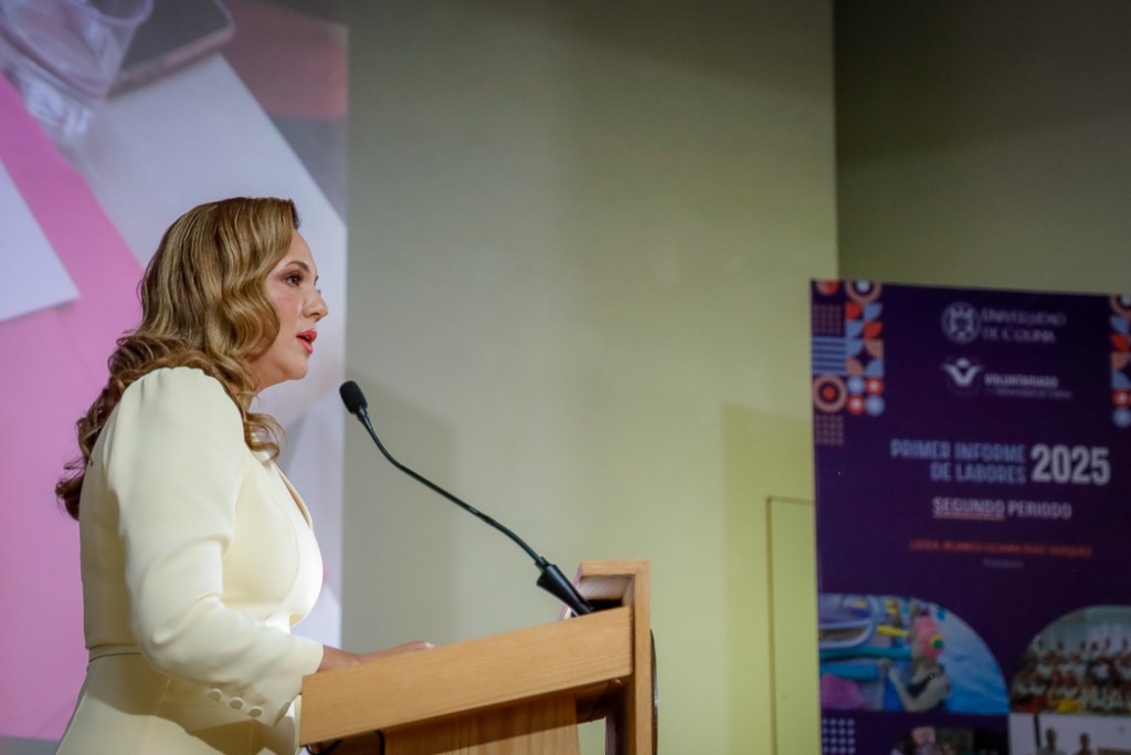 Colima, México, Avanzada (26/03/2026).- Campañas de prevención contra el cáncer de mama, el cuidado del medio ambiente y la donación altruista de sangre, son solo 3 de las 168 acciones institucionales impulsadas por el Voluntariado de la Universidad de Colima este último año, según lo dio a conocer su presidenta, Blanca Liliana Díaz Vázquez, al rendir el primer informe de labores de su segundo periodo al frente de esta instancia universitaria, la tarde de este miércoles 25 de marzo, en el Auditorio de la Facultad de Ciencias Políticas y Sociales de la Universidad de Colima.
