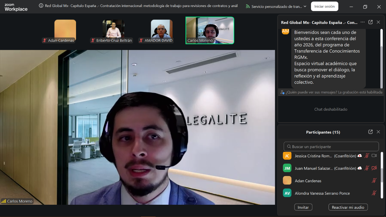 El mexicano-español Carlos Moreno, dictó la conferencia virtual “Contratación internacional: metodología de trabajo para la revisión de contratos y el análisis de riesgos”.